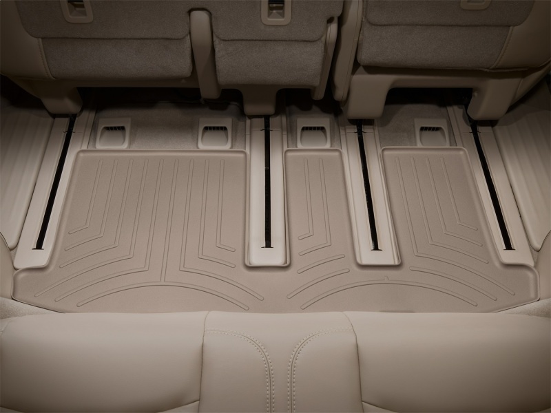 The WeatherTech FloorLiner DigitalFit accurately and completely lines the interior carpet giving "absolute interior protection". Digital laser measurements of interior surfaces offer a consistently perfect fit. A patent pending HighDensity TriExtruded (HDTE) material allows for a rigid core for strength while offering surface friction to the carpet, as well as tactile feel to the surface. Advanced surfacing creates channels that carry fluids and debris to a lower reservoir with further channeling to help minimize fluid movement while driving. Once fluids become trapped in the reservoir, away from shoes and clothing, they are easily removed from the WeatherTech FloorLiner DigitalFit over the door sill. No muss-no fuss. 3 year warranty. FloorLiner™ DigitalFit®; Tan; 3rd Row;