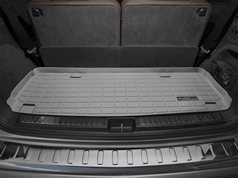WeatherTech Cargo Liners provide complete trunk - cargo area protection. Our cargo liners are computer designed to fit your vehicle and have a raised lip to keep spills, dirt and grease off your vehicles interior, protecting your carpeting from normal wear and tear. Made from a proprietary custom blended TPO (thermopolyolefin) that is not only wear resistant, but also remains flexible under temperature extremes. The WeatherTech Cargo Liner features a textured finish which helps to keep cargo from shifting, and is perfect for hauling just about anything. Available in three colors, Black, Tan or Grey. Available for car trunks, SUVs and minivans. WeatherTech Bumper Protector is a great addition to your Cargo Liner to help protect the surface of your vehicle's bumper from dings and scratches when loading or unloading personal items or pets. The Bumper Protector is made from highly durable vinyl fabric that easily snaps onto your Cargo Liner by stainless, rust resistant snaps. The WeatherTech Bumper Protector comes in two sizes: 30 in. long x 30 in. wide and 30 in. long x 40 in. wide. Bumper Protectors are vehicle specific so the correct size option will be shown for your vehicle. Cargo Liner; Gray; Behind 3rd Row Seating;