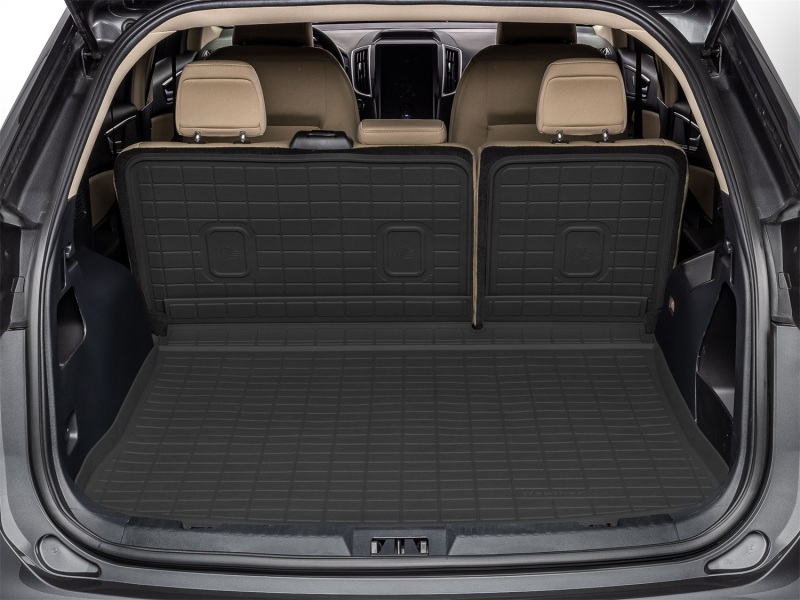 Do you often find yourself putting your back seats down to make room for pets, gear, groceries and more? WeatherTech's SeatBack Cargo Liner HP safeguards the base and up the back seats of your vehicle's cargo area, even when the seats are down! This cargo liner is made from the same heavy-duty, rubber-like material as our bestselling FloorLiner HP, offering a durable one-piece mat that defends against spills and messes. Its patent pending expandable accordion hinge allows you to put your back seats in the full-down position and maintain uninterrupted coverage - no more spills or pet hair adhering to the back of your seats or cargo area! There's even a specially designed water retention ribbing system that helps trap water. SeatBack Cargo Liner HP defends against the dirt, grass, mud, and debris that come from workout gear, dogs, sports equipment, groceries, or anything else you put in your cargo area. Non-slip nibs on the underside - and hook fasteners - keep this trunk liner in place - both on the floor and up the backs of your seats. Plus, because it's a one-piece mat, installation and removal for cleaning is easy. Have young kids? No problem! SeatBack Cargo Liner HP features a trimmable outline to accommodate attachments for child car seats - known as ISOFIX - while the cargo mat stays in place. Made from a thermoplastic elastomer, this cargo mat offers the flexibility and durability needed for maximum protection. It won't break down in extreme weather, and is 100% recyclable with no latex, PVCs, cadmium or lead. Enjoy high-performance, full coverage and protection for the bottom and seat backs of your cargo area with the American-made SeatBack Cargo Liner HP.