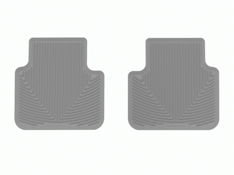 The WeatherTech All-Weather Floor Mats have deeply sculpted channels designed to trap water, road salt, mud and sand. They won't curl, crack or harden in sub-zero weather. Our All-Weather Floor Mats also have anti-skid ridges to prevent shifting in your vehicle and come with a protective, non-stick finish to make cleanup quick and easy. The All-Weather Floor Mats are made using advanced rubber-like, Thermoplastic Elastomer (TPE) compound making it both soft and durable. All Weather Floor Mats; Gray; Rear;
