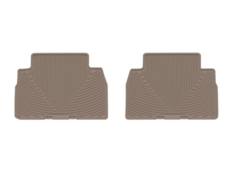 The WeatherTech All-Weather Floor Mats have deeply sculpted channels designed to trap water, road salt, mud and sand. They won't curl, crack or harden in sub-zero weather. Our All-Weather Floor Mats also have anti-skid ridges to prevent shifting in your vehicle and come with a protective, non-stick finish to make cleanup quick and easy. The All-Weather Floor Mats are made using advanced rubber-like, Thermoplastic Elastomer (TPE) compound making it both soft and durable. All Weather Floor Mats; Tan; Rear;
