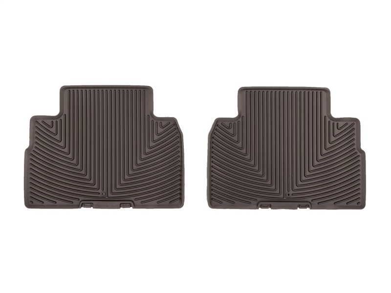 The WeatherTech All-Weather Floor Mats have deeply sculpted channels designed to trap water, road salt, mud and sand. They won't curl, crack or harden in sub-zero weather. Our All-Weather Floor Mats also have anti-skid ridges to prevent shifting in your vehicle and come with a protective, non-stick finish to make cleanup quick and easy. The All-Weather Floor Mats are made using advanced rubber-like, Thermoplastic Elastomer (TPE) compound making it both soft and durable. All Weather Floor Mats; Cocoa; Rear;