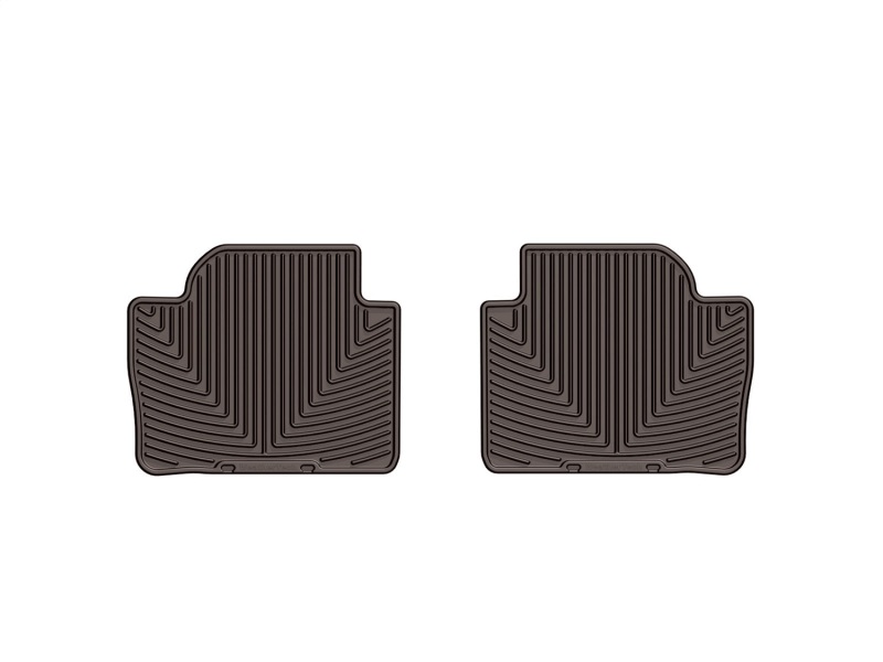 The WeatherTech All-Weather Floor Mats have deeply sculpted channels designed to trap water, road salt, mud and sand. They won't curl, crack or harden in sub-zero weather. Our All-Weather Floor Mats also have anti-skid ridges to prevent shifting in your vehicle and come with a protective, non-stick finish to make cleanup quick and easy. The All-Weather Floor Mats are made using advanced rubber-like, Thermoplastic Elastomer (TPE) compound making it both soft and durable. All Weather Floor Mats; Rear; Cocoa;