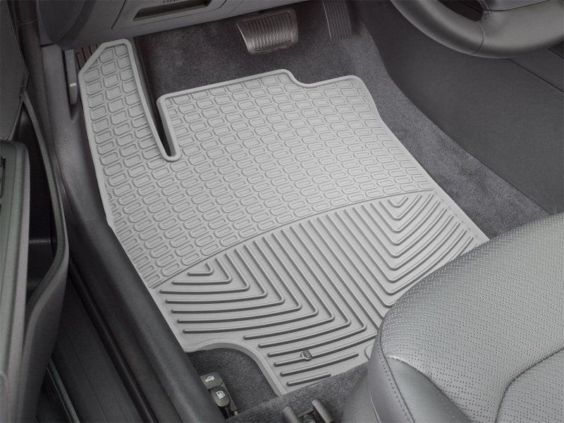 The WeatherTech All-Weather Floor Mats have deeply sculpted channels designed to trap water, road salt, mud and sand. They won't curl, crack or harden in sub-zero weather. Our All-Weather Floor Mats also have anti-skid ridges to prevent shifting in your vehicle and come with a protective, non-stick finish to make cleanup quick and easy. The All-Weather Floor Mats are made using advanced rubber-like, Thermoplastic Elastomer (TPE) compound making it both soft and durable. All Weather Floor Mats; Gray; Front;