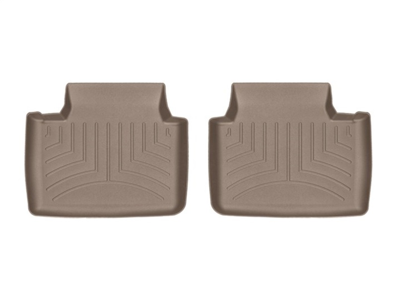 The WeatherTech FloorLiner DigitalFit accurately and completely lines the interior carpet giving absolute interior protection. Digital laser measurements of interior surfaces offer a consistently perfect fit. A patent pending HighDensity TriExtruded (HDTE) material allows for a rigid core for strength while offering surface friction to the carpet, as well as tactile feel to the surface. Advanced surfacing creates channels that carry fluids and debris to a lower reservoir with further channeling to help minimize fluid movement while driving. Once fluids become trapped in the reservoir, away from shoes and clothing, they are easily removed from the WeatherTech FloorLiner DigitalFit over the door sill. No muss-no fuss. FloorLiner™ DigitalFit®; Tan; Rear;