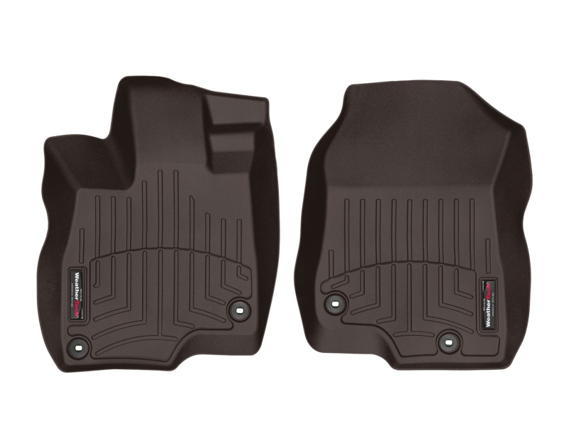 The WeatherTech FloorLiner DigitalFit accurately and completely lines the interior carpet giving absolute interior protection. Digital laser measurements of interior surfaces offer a consistently perfect fit. A patent pending HighDensity TriExtruded (HDTE) material allows for a rigid core for strength while offering surface friction to the carpet, as well as tactile feel to the surface. Advanced surfacing creates channels that carry fluids and debris to a lower reservoir with further channeling to help minimize fluid movement while driving. Once fluids become trapped in the reservoir, away from shoes and clothing, they are easily removed from the WeatherTech FloorLiner DigitalFit over the door sill. No muss-no fuss. FloorLiner™ DigitalFit®; Cocoa; Front;
