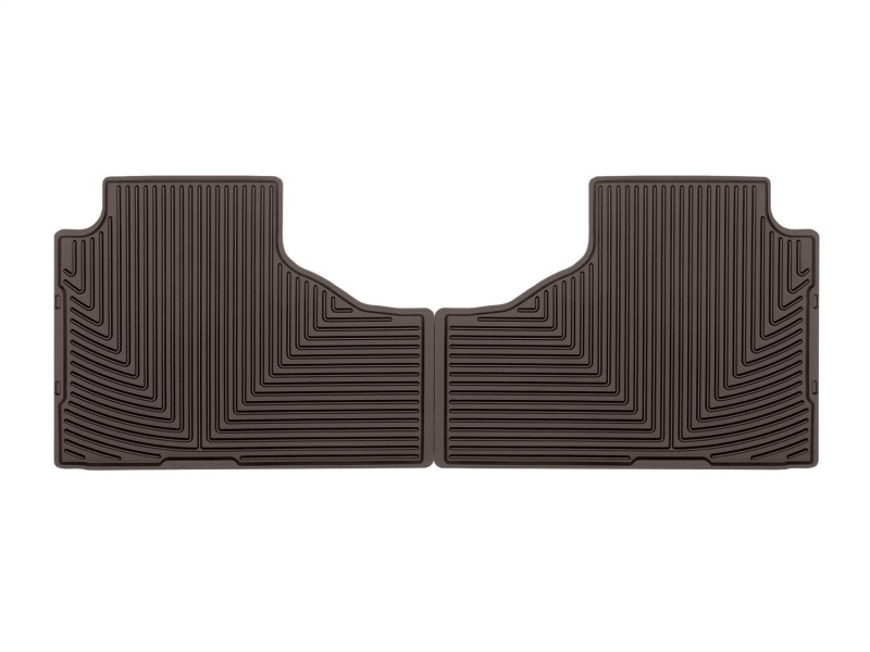 The WeatherTech All-Weather Floor Mats have deeply sculpted channels designed to trap water, road salt, mud and sand. They won't curl, crack or harden in sub-zero weather. Our All-Weather Floor Mats also have anti-skid ridges to prevent shifting in your vehicle and come with a protective, non-stick finish to make cleanup quick and easy. The All-Weather Floor Mats are made using advanced rubber-like, Thermoplastic Elastomer (TPE) compound making it both soft and durable. All Weather Floor Mats; Cocoa; Rear;