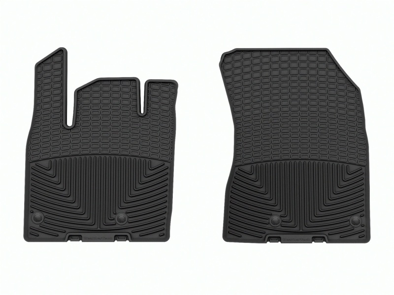 The WeatherTech All-Weather Floor Mats have deeply sculpted channels designed to trap water, road salt, mud and sand. They won't curl, crack or harden in sub-zero weather. Our All-Weather Floor Mats also have anti-skid ridges to prevent shifting in your vehicle and come with a protective, non-stick finish to make cleanup quick and easy. The All-Weather Floor Mats are made using advanced rubber-like, Thermoplastic Elastomer (TPE) compound making it both soft and durable. All Weather Floor Mats; Black; Front;