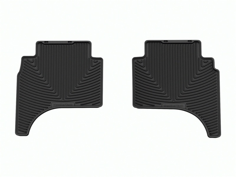 The WeatherTech All-Weather Floor Mats have deeply sculpted channels designed to trap water, road salt, mud and sand. They won't curl, crack or harden in sub-zero weather. Our All-Weather Floor Mats also have anti-skid ridges to prevent shifting in your vehicle and come with a protective, non-stick finish to make cleanup quick and easy. The All-Weather Floor Mats are made using advanced rubber-like, Thermoplastic Elastomer (TPE) compound making it both soft and durable. All Weather Floor Mats; Black; Rear;