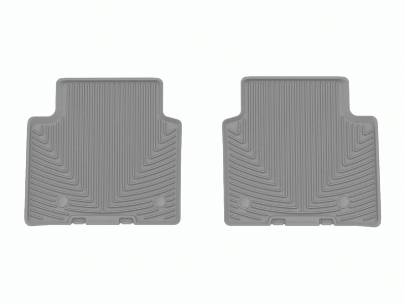 The WeatherTech All-Weather Floor Mats have deeply sculpted channels designed to trap water, road salt, mud and sand. They won't curl, crack or harden in sub-zero weather. Our All-Weather Floor Mats also have anti-skid ridges to prevent shifting in your vehicle and come with a protective, non-stick finish to make cleanup quick and easy. The All-Weather Floor Mats are made using advanced rubber-like, Thermoplastic Elastomer (TPE) compound making it both soft and durable. All Weather Floor Mats; Gray; Rear;