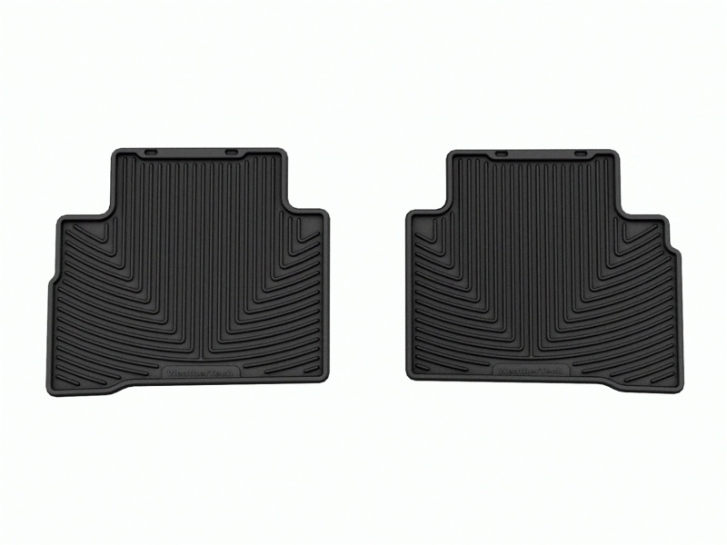 The WeatherTech All-Weather Floor Mats have deeply sculpted channels designed to trap water, road salt, mud and sand. They won't curl, crack or harden in sub-zero weather. Our All-Weather Floor Mats also have anti-skid ridges to prevent shifting in your vehicle and come with a protective, non-stick finish to make cleanup quick and easy. The All-Weather Floor Mats are made using advanced rubber-like, Thermoplastic Elastomer (TPE) compound making it both soft and durable. All Weather Floor Mats; Black; Rear;