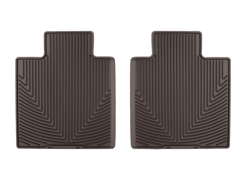 The WeatherTech All-Weather Floor Mats have deeply sculpted channels designed to trap water, road salt, mud and sand. They won't curl, crack or harden in sub-zero weather. Our All-Weather Floor Mats also have anti-skid ridges to prevent shifting in your vehicle and come with a protective, non-stick finish to make cleanup quick and easy. The All-Weather Floor Mats are made using advanced rubber-like, Thermoplastic Elastomer (TPE) compound making it both soft and durable. All Weather Floor Mats; Cocoa; Rear;
