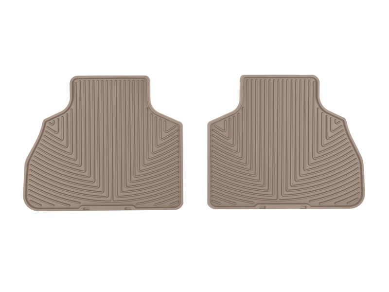 The WeatherTech All-Weather Floor Mats have deeply sculpted channels designed to trap water, road salt, mud and sand. They won't curl, crack or harden in sub-zero weather. Our All-Weather Floor Mats also have anti-skid ridges to prevent shifting in your vehicle and come with a protective, non-stick finish to make cleanup quick and easy. The All-Weather Floor Mats are made using advanced rubber-like, Thermoplastic Elastomer (TPE) compound making it both soft and durable. All Weather Floor Mats; Tan; Rear;
