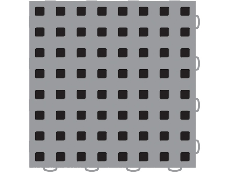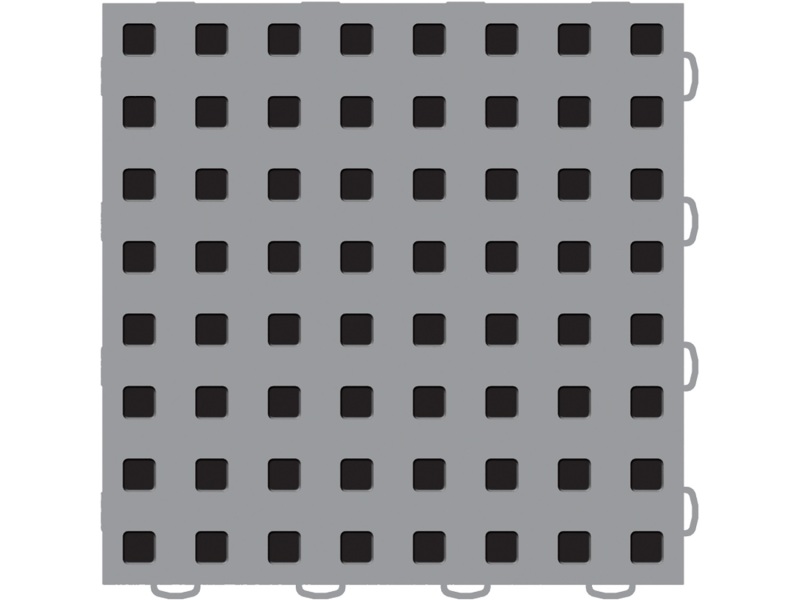 TechFloorTM tiles are custom engineered utilizing a loop and tab attaching system to tightly lock tiles together and create a seamless look. Each tile has 2 connecting edges with loops, and 2 connecting edges with tabs. They quickly attach to each other by laying the tab of one tile over the loop of the next, and snapping them down into place.